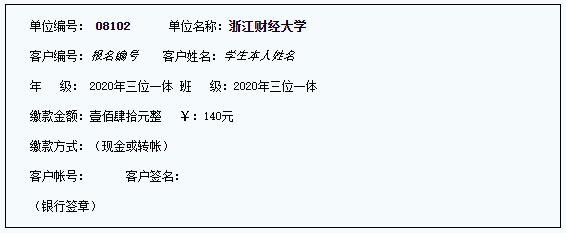 浙江省考生报名缴费凭证银校通缴款凭证样本(以当地实际发放为准)