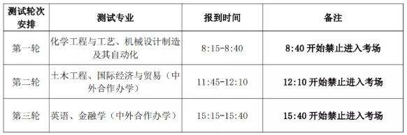 3.三位一体综合素质测试时间为7月13日(具体安排如下表,请核对是否与准考证上的时间安排一致,如有问题请及时联系招生办公室)。