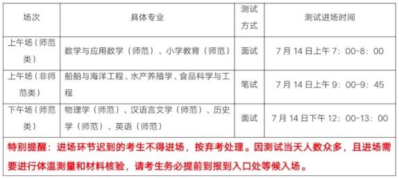为确保师生生命安全和身体健康、确保综合素质测试工作顺利进行,经学校“三位一体”综合评价招生工作领导小组研究决定,对具有测试资格的考生按专业归类,分上、下午场进行,其中笔试考场及座位号、面试考场及顺序号将在学校纪委监察室监督下,7月10日前通过网上抽签系统随机生成,过程全程摄像并存档。上、下午场安排如下: