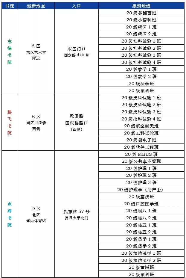 复旦大学2020迎新小贴士,9月12日来五大书院报到~