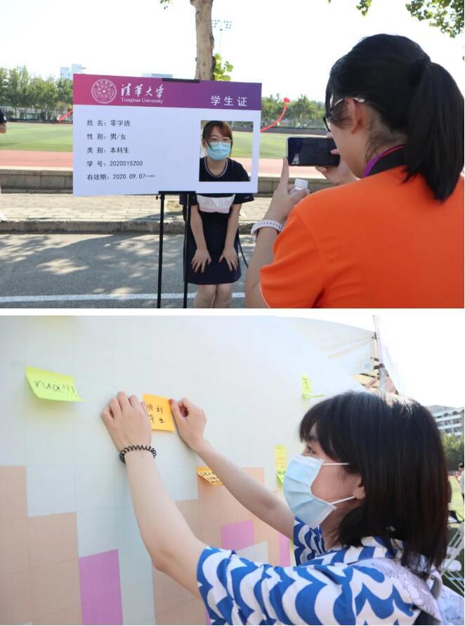 与书院的合影板拍照留念,在签名板上留下自己的笔迹,祝源铎逐项完成报到仪式后,推着箱子在志愿者的带领下前往宿舍,“报到过程很顺利,清华的学长学姐和老师们都特别热情,我非常期待接下来的校园生活!”