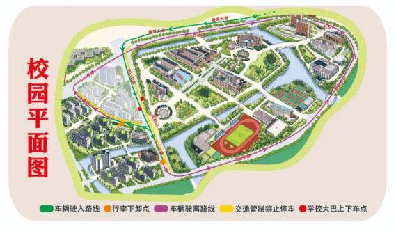 (4)请家长确认孩子所住楼栋,事先规划好行车路线,报到期间根据路面交通指示标识和现场指挥安全行驶。