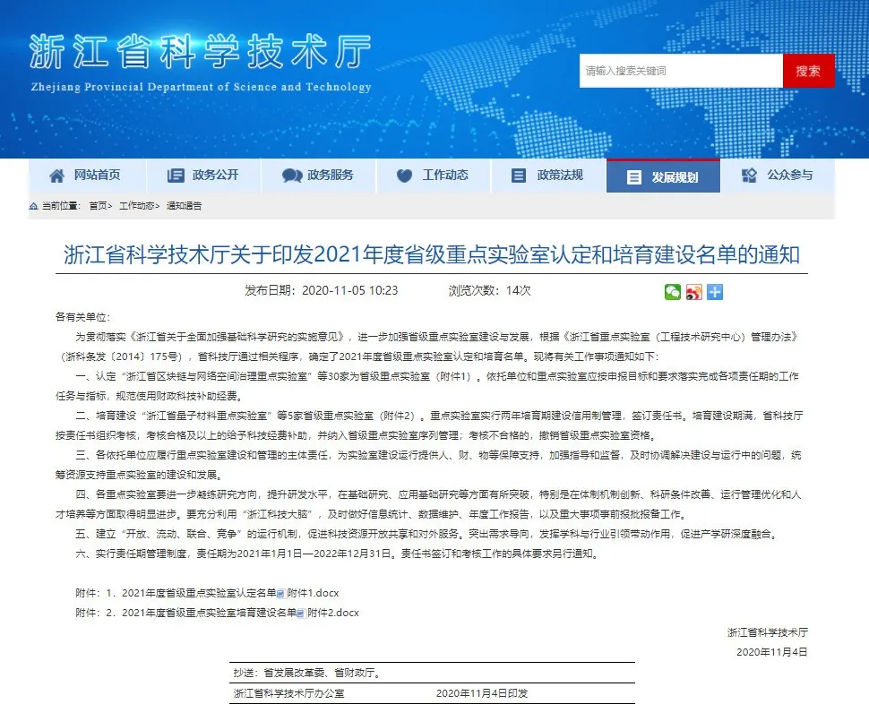 近日,浙江省科学技术厅公布了