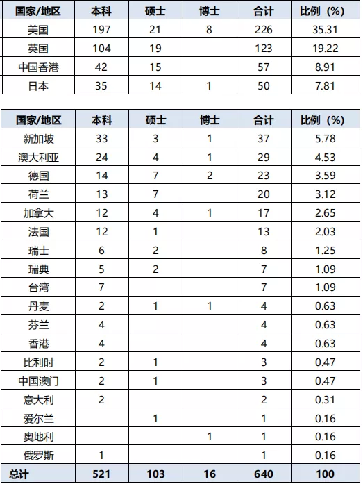 出国出境学生中,到 QS 排名前 100 名院校深造的毕业生有 411 人,占出国出境人数的 64.22%,高于去年 2.19%。