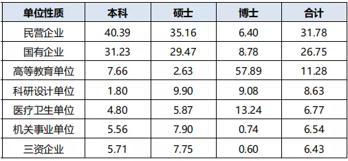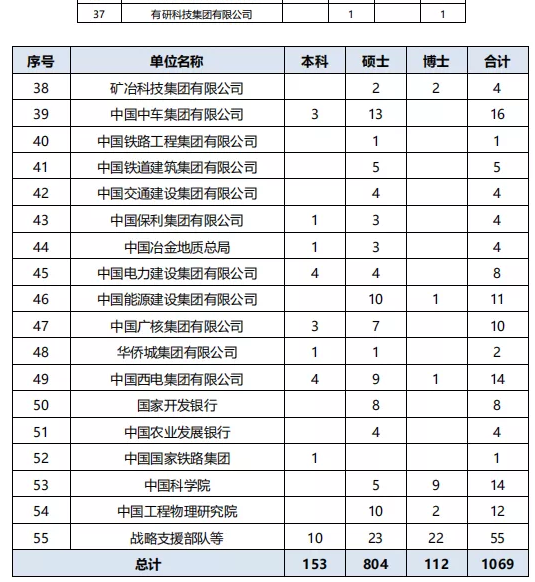 ②到国资委直属大型央企、重要科研机构及战略支援部队等就业的人数为 1069 人,占签约就业人数的 22.85%。