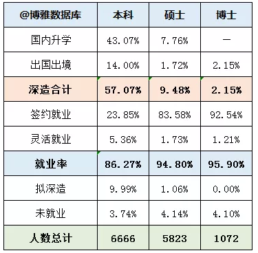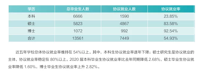 本科毕业生就业率86.27%(继续考研和等待出国人数666人,约占毕业生总数10%)。