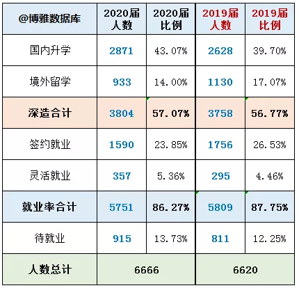 ·每年约80%的本科毕业生希望继续深造,协议签约人数继续走低,2020年协议就业率仅23.48%。
