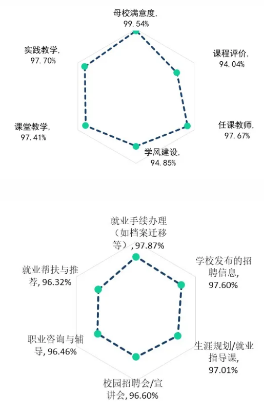 毕业生对母校人才培养、就业教育/服务满意度较高。