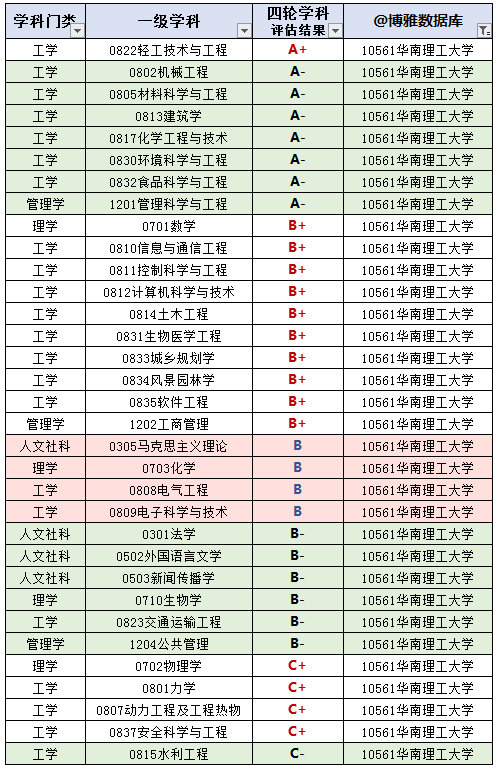 轻工技术与工程、建筑学、食品科学与工程、化学工程 与技术、环境科学与工程、材料科学与工程、机械工程、管理科学与工程等学科整体水平进入全国前10%;10 个学科ESI 全球排名前1%,其中,工程学、材料科学、化学、农业科学4 个学科领域进入前1‰,入选数在全国高校中并列排名第6 位,华南地区首位。