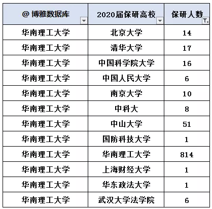 如,保研华南理工814人,考研华南理工=1154-814=340人。