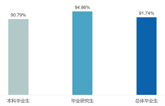 学校毕业生总体就业率为91.74%,稳定在高水平。其中,本科毕业生就业率为90.79%,毕业研究生就业率为94.86%。