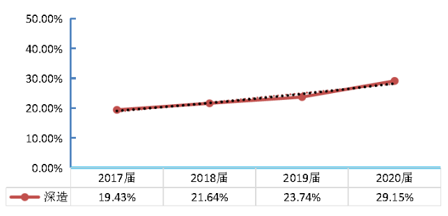 2020届毕业生中,继续深造的毕业生有1074人。其中,本科毕业生继续深造的有1047人,深造率为29.15%。