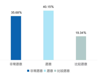 毕业生对母校的推荐度为95.17%,其中“非常愿意”占比35.68%,“愿意”占比40.15%,“比较愿意”占比19.34%。