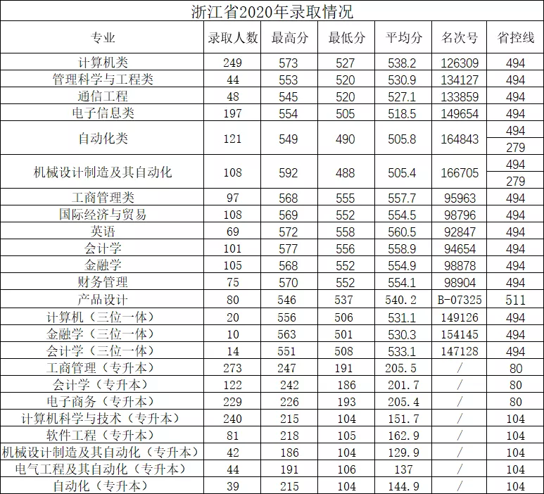 2020年杭州电子科技大学信息工程学院浙江省分专业录取分数线