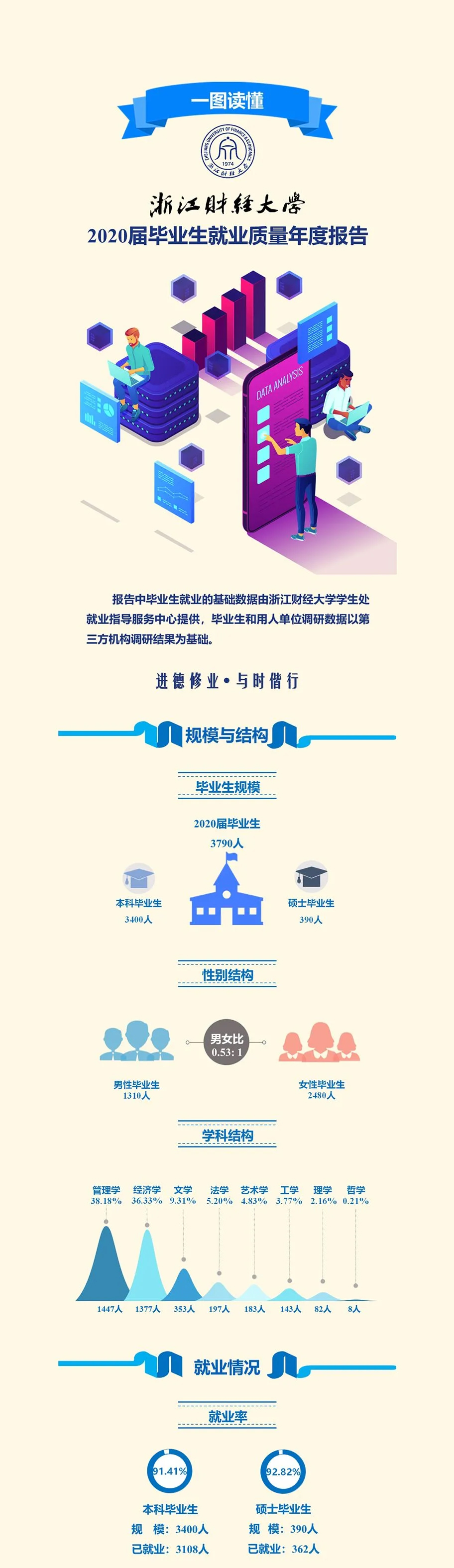 浙江财经大学2020届毕业生就业质量报告闪亮发布,接下来就带大家一图读懂报告,你想知道的都在这里。