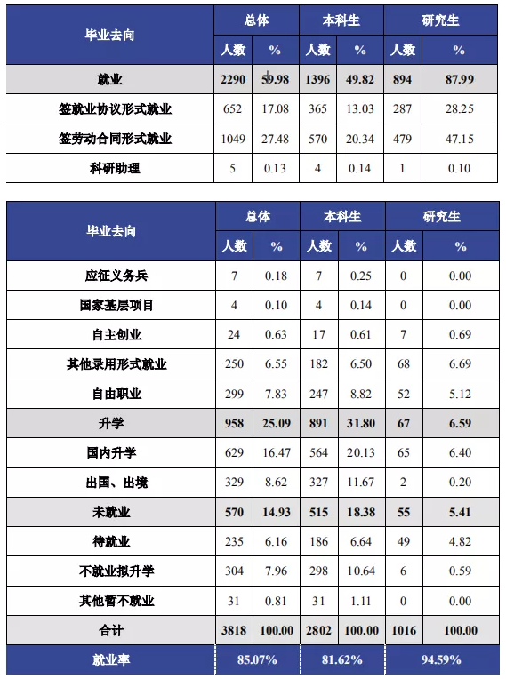 本科毕业生就业率为81.62%,