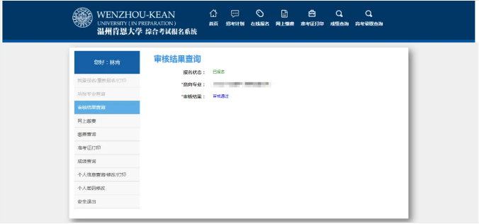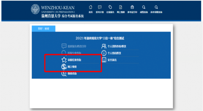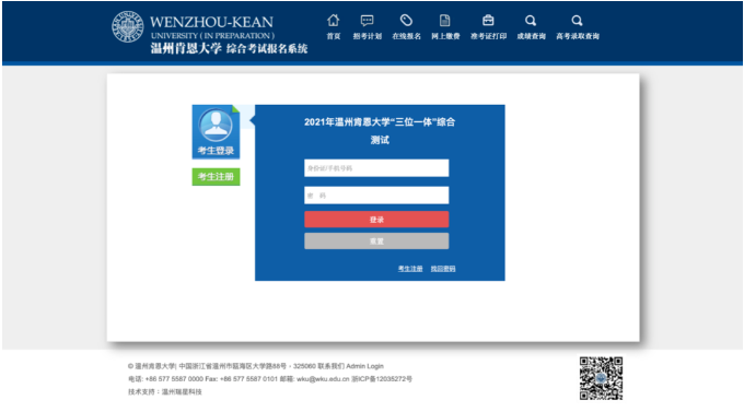 所有报名考生请登录温州肯恩大学三位一体报名系统进行结果查询与缴费。