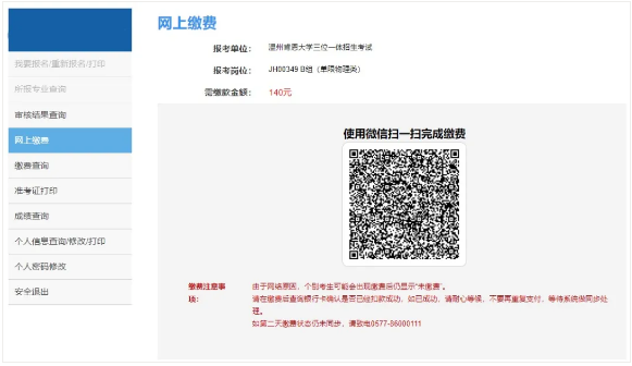 提醒:扣款成功,即表示已缴费成功。报名系统会在一段时间后更新缴费状态。