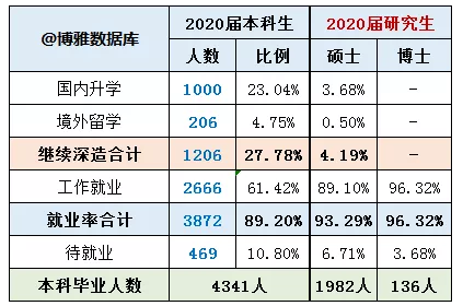 · 2020 届本科毕业生的月平均收入为 5245.23 元,硕士6837.03 元,博士8744.03 元。