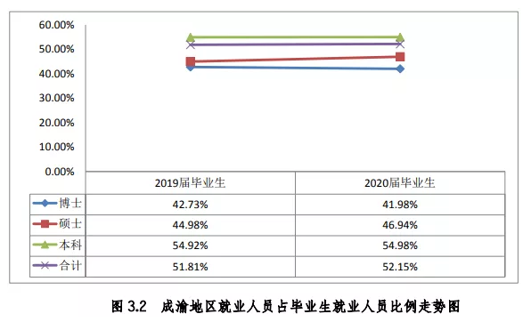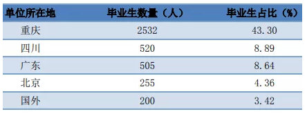超过就业人数一半(3052 人,占 52.15%)的毕业生选择在成渝地区就业。前五就业地点如下: