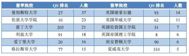 本科生出国(境)留学院校主要为曼彻斯特大学(37 人)、伦敦大 学学院(23 人)、雷丁大学(21 人)、利兹大学(18 人)等。