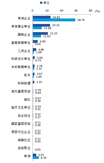 研究生就业地区分布(单位:%):
