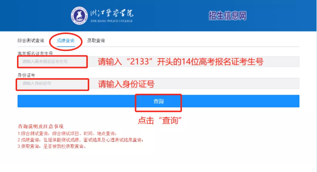 浙江警察学院“三位一体”招生综合测试顺利收官!综合测试成绩已全部上网,考生可登陆招生信息网查询。查询流程如下: