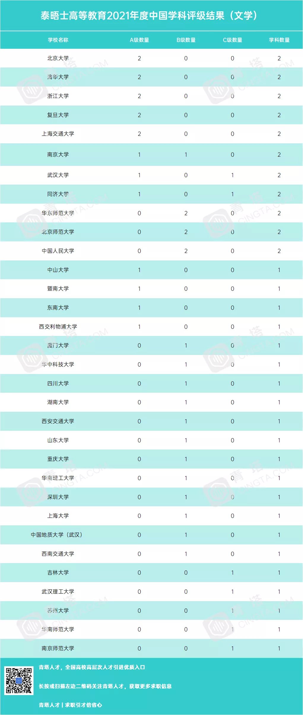 5月11日,泰晤士高等教育发布2021年度中国学科评级结果。今年的评级涵盖90所中国大陆高校,以及全球1420所院校。评分采用中国教育部的学科分类法,涵盖89个科目,采用A+ 至C–评分系统。