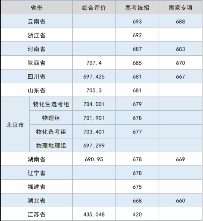 3、综合评价最低平均分在700分左右,综合评价成绩为:高考60%+校测30%+学业水平10%。