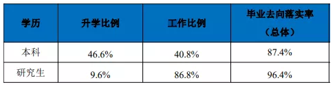 本科生毕业去向落实率为 87.4%(其中 有就业意愿学生毕业去向落实率达 97.2%),
