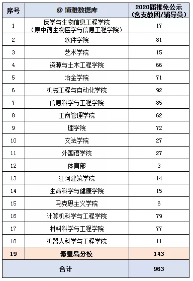 2020年东北大学推免生共计963人。