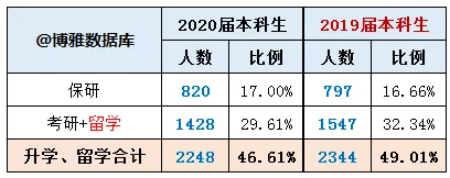 2020 届本科毕业生升学比例为 46.6%(包括国内升学和留学)。