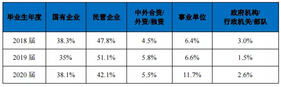 近三年毕业生就业单位性质流向情况: