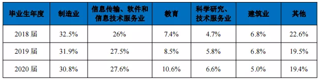 近三年毕业生就业行业流向: