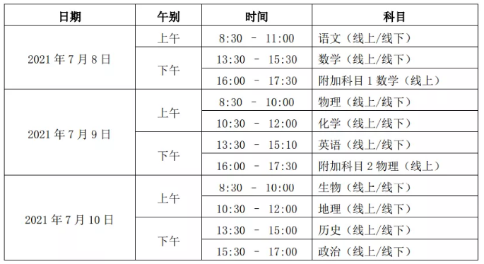测试科目不同:线上机考除包含纸笔测试的内容(体现对于高中知识的掌握),另外设置了附加科目,侧重数理考察,体现大学选材的方向。其中附加1为数学、附加2为物理。