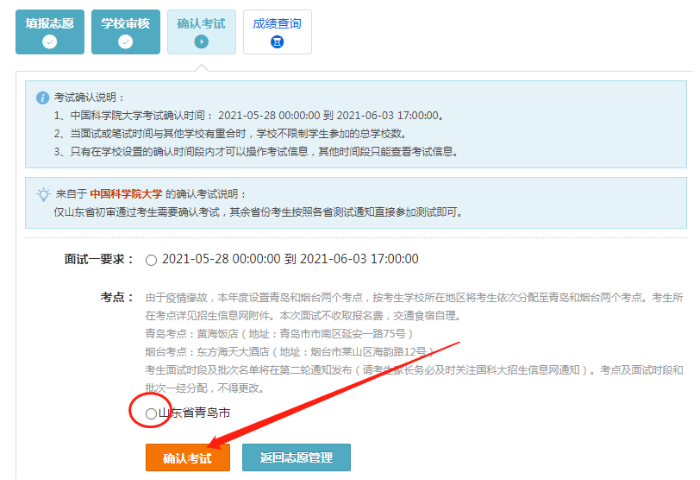 中国科学院大学(以下简称“国科大”)2021年本科综合评价面试(山东省)于2021年6月12-13日在青岛和烟台举行。