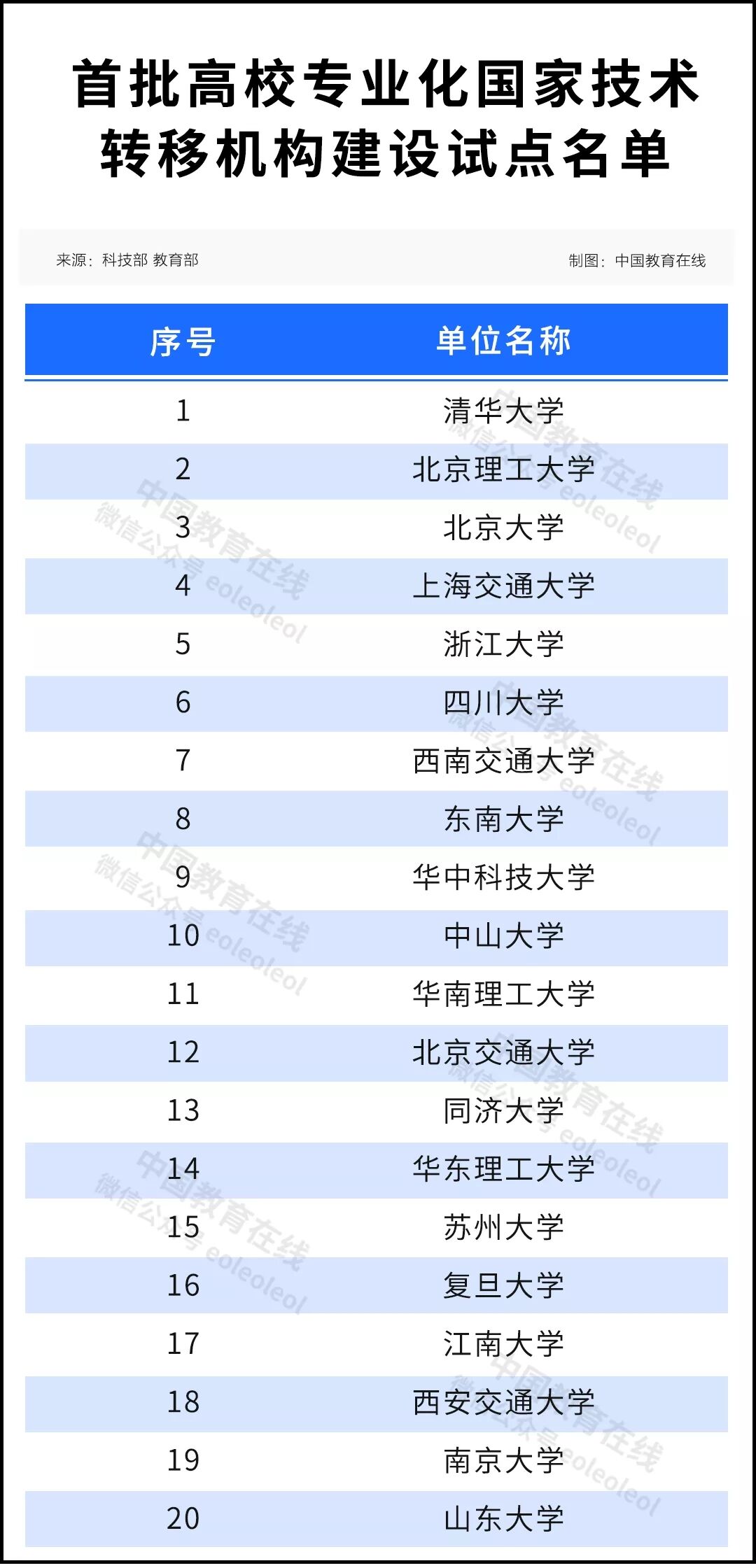 20所“双一流”入选首批高校专业化国家技术转移机构建设试点名单!