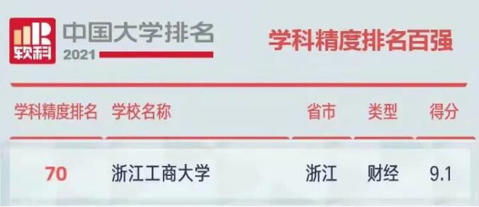 2021软科中国大学学科精度榜:浙江工商大学全国第70位,浙江省属高校第1位!