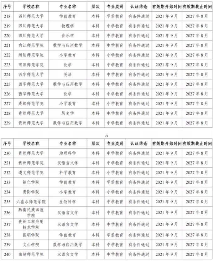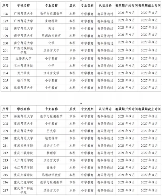 教育部公布2021年师范类专业通过认证名单|浙江省共有10所