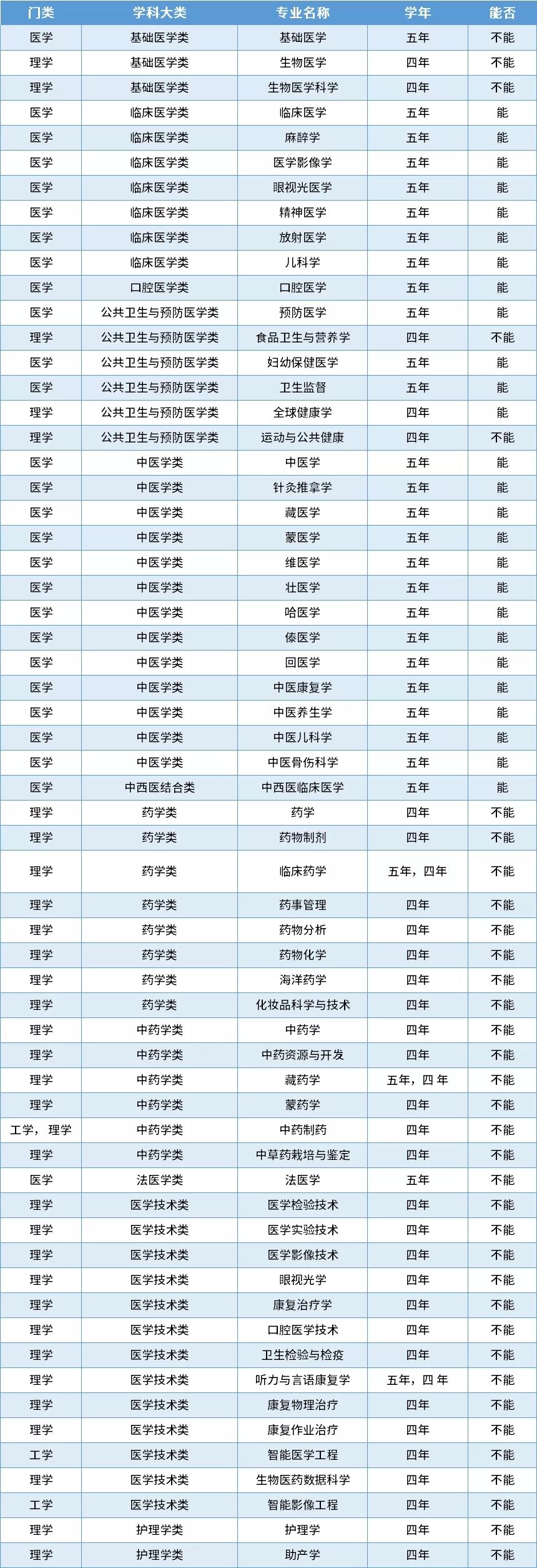 下面是根据2021年医学学科门类本科专业设置的目录,归纳整理哪些专业能报与不能报执业医师资格证: