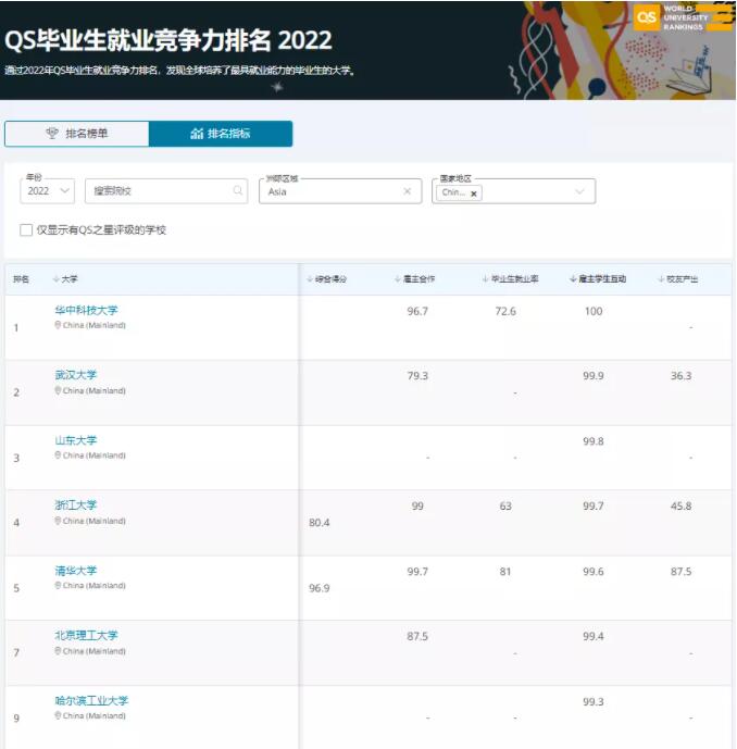 近日,全球高等教育研究机构QS(Quacquarelli Symonds)发布了2022毕业生就业竞争力排名,华中科技大学位居中国大陆高校第6,较去年前进1位;在雇主与学生关系这一指标中,我校连续六年位居世界第一。