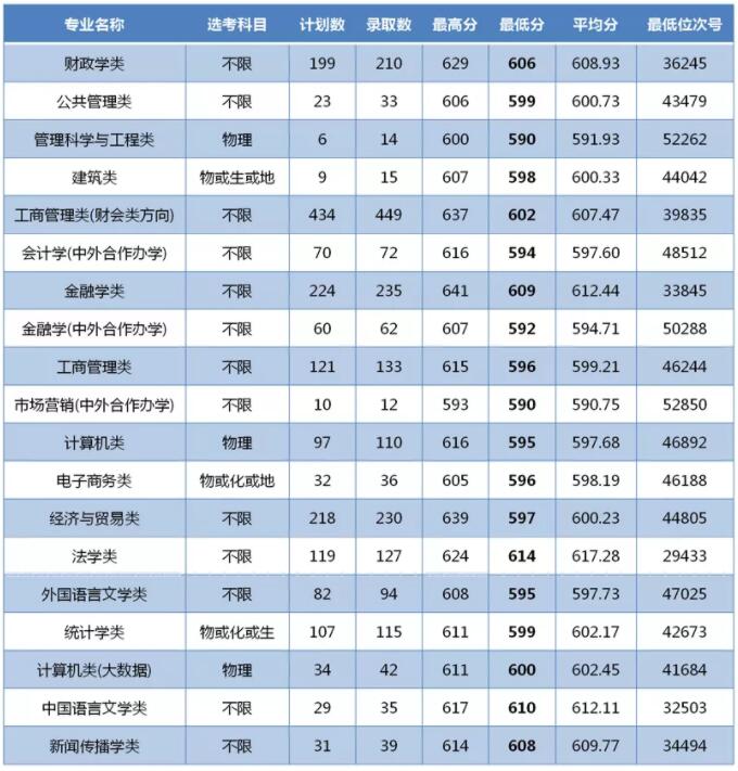 2021年浙江财经大学浙江分专业录取分数线
