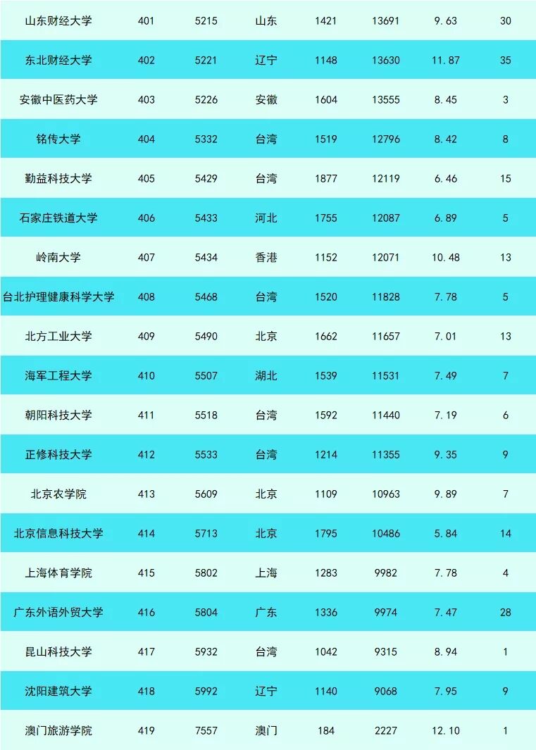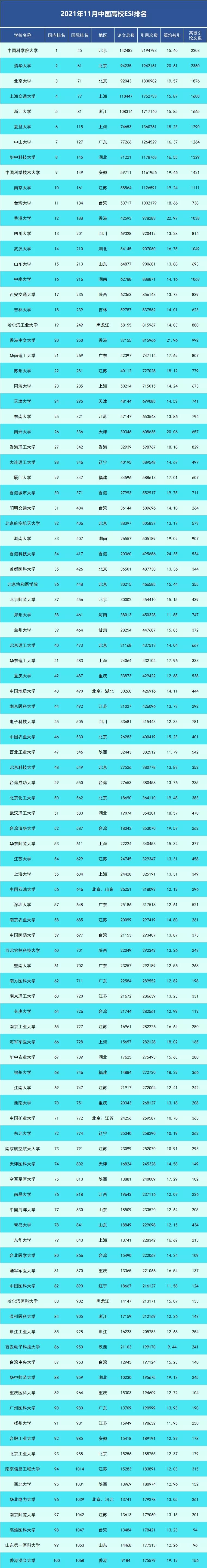 中国上榜高校数为419所(大陆353,台湾55,香港8,澳门3),与2021年9月总数相比增加了11所。其中,大陆新增8所,台湾新增2所,澳门新增1所。