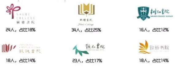 树德书院24人,树礼书院34人,树仁书院16人,致诚书院18人,致仁书院23人,致新书院18人。