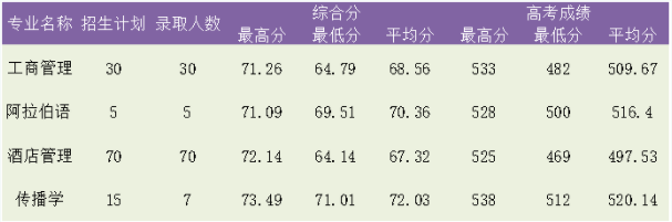 3.投档规则:按招生专业计划数1:1划定校内投档基准线,对进档考生,根据专业志愿,按综合成绩从高到低择优录取。若考生综合成绩相同时,则按单项分数高低排序,单项顺序排列依次为:综合素质测试成绩、高考总分、高考外语单科分数、文化总分、语文数学总分、学业水平测试(高中学考)成绩。
