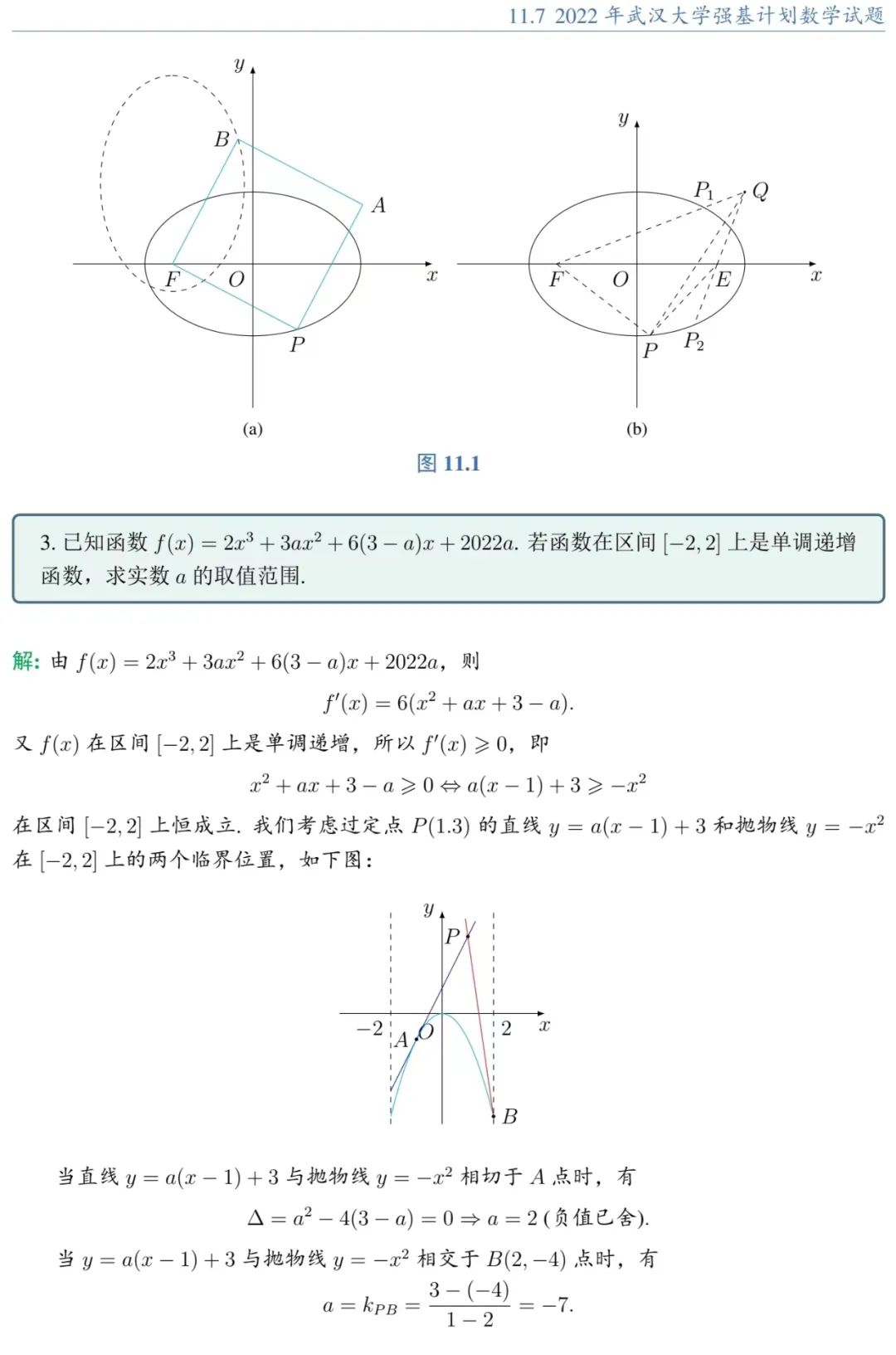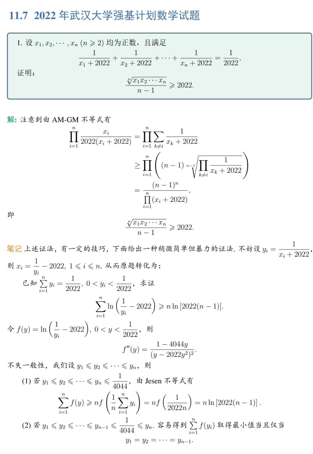 武汉大学2022年强基计划笔试数学试题解析