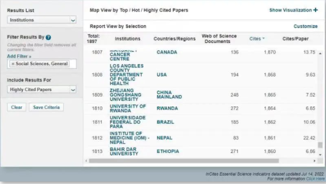 浙江工商大学进入全球ESI前1%学科的为“一般社会科学”,更新数据统计时间为2012年1月1日至2022年4月30日,浙江工商大学近十年间在一般社会科学学科(SOCIAL SCIENCES, GENERAL)共发表论文248篇,共被引用1865次。