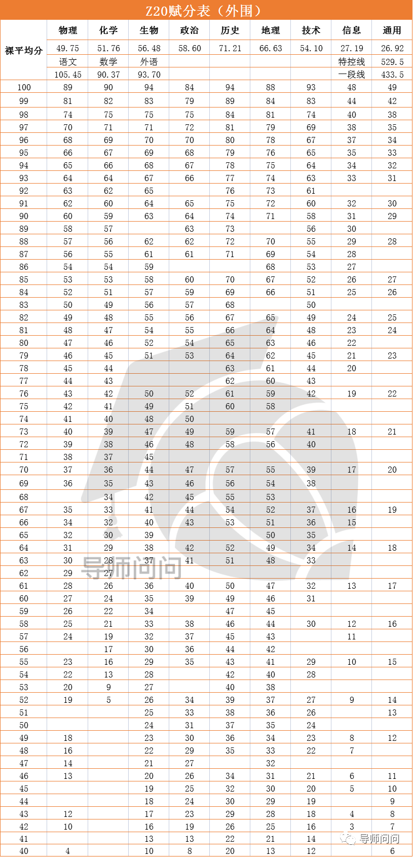 2022年浙江省内联考赋分表汇总