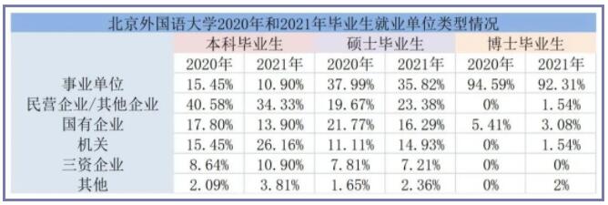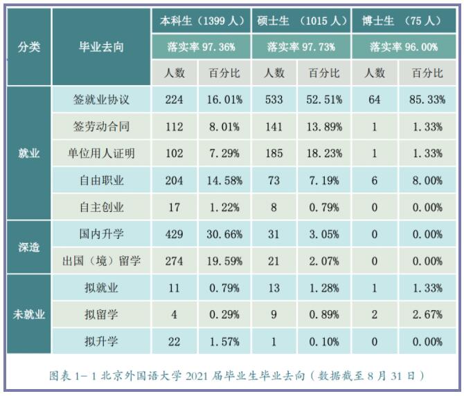 北京外国语大学2021届毕业生就业质量报告(本科+硕士+博士)