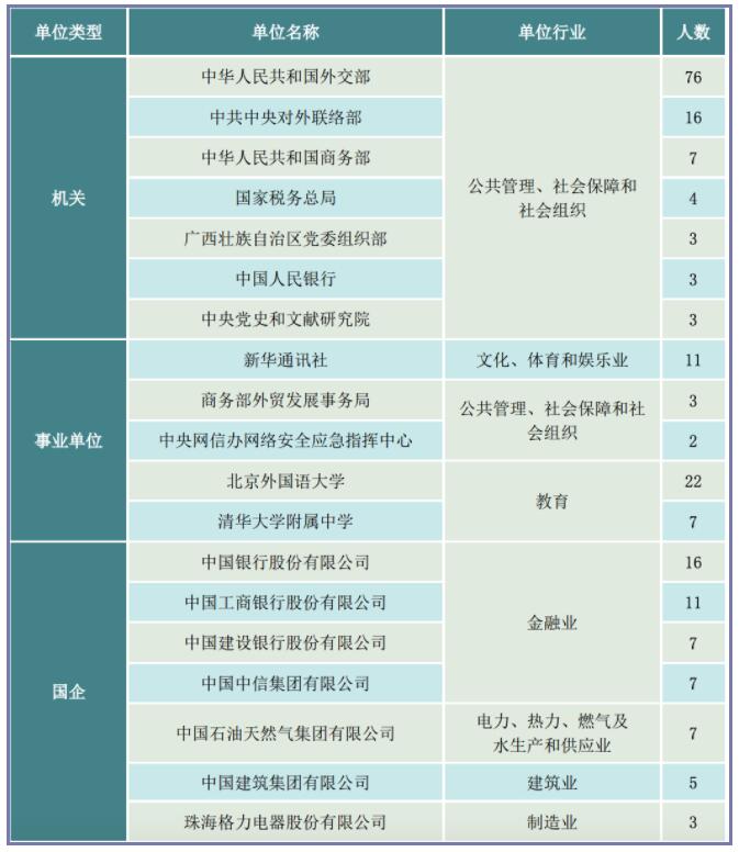 与2020年相比,外交部依然是北外毕业生最主要的去向。